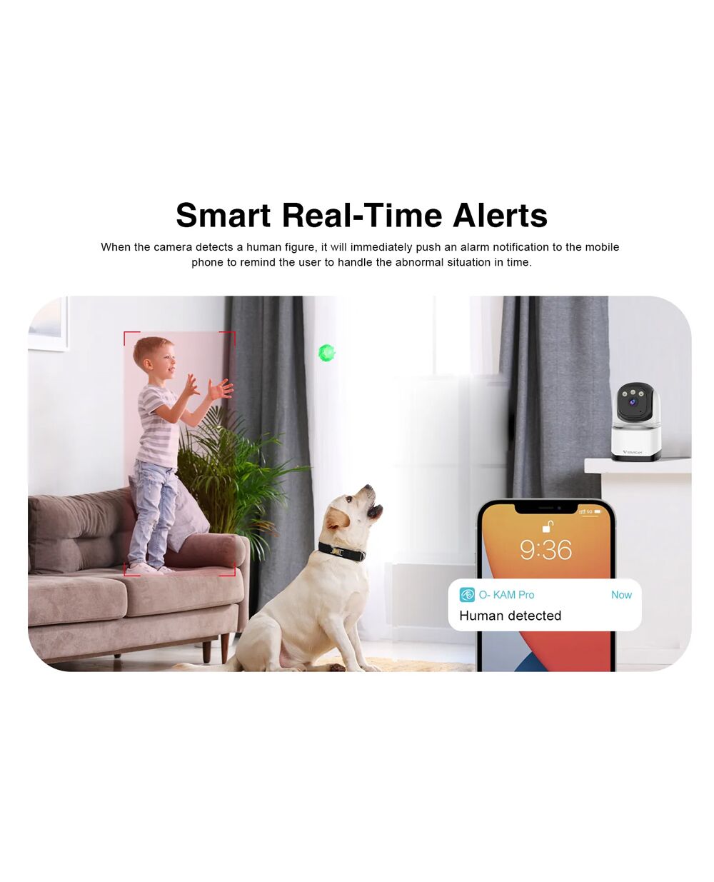 -Alarm detection: Motion detection, human detection, human framing, siren sound, and area detection