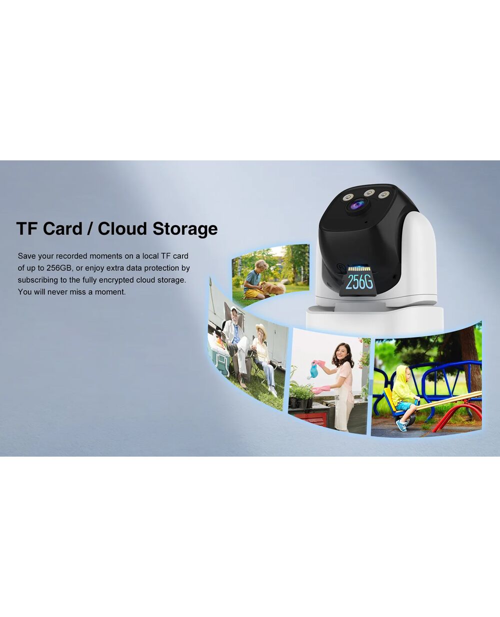 Η αποθήκευση των αρχείων γίνεται σε λογαριασμό στο cloud ή σε κάρτα μνήμης micro SD (δεν συμπεριλαμβάνεται).