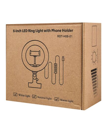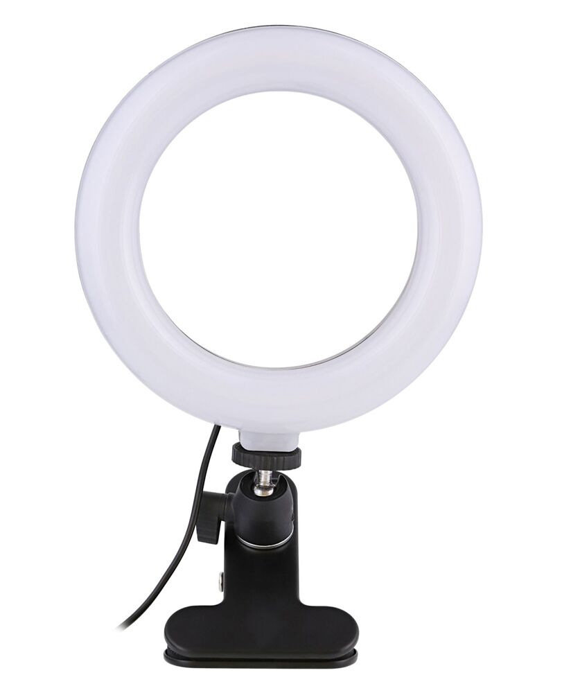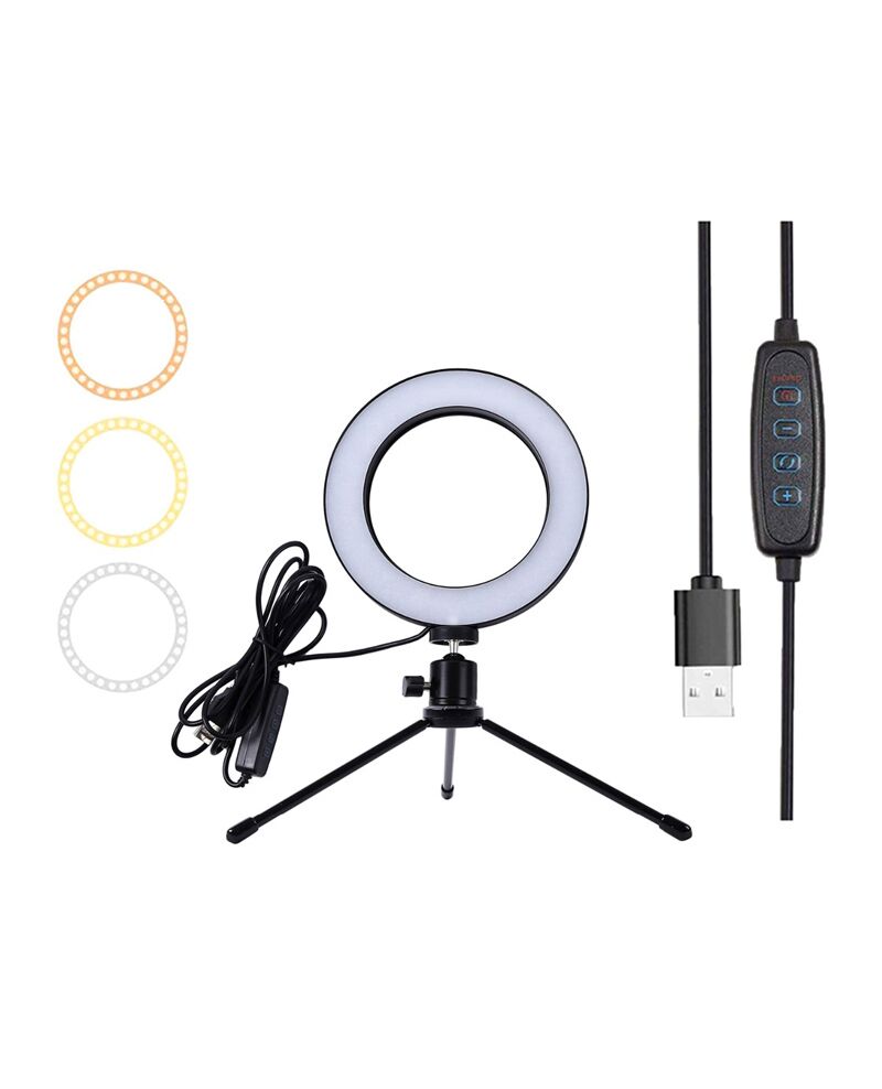Φωτιστικό δαχτυλίδι LED με διάμετρο 16cm, ιδανικό για λήψη φωτογραφιών ή βίντεο, μακιγιάζ και live μεταδόσεις. Διαθέτει λαμπτήρα που προσφέρει τη δυνατότητα αλλαγής χρώματος λευκού φωτός αλλά και την μείωση/αύξηση της φωτεινότητας.