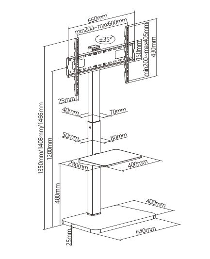 -μέγιστο φορτίο: βάση τηλεόρασης: 40kg, ράφι: 5kg
