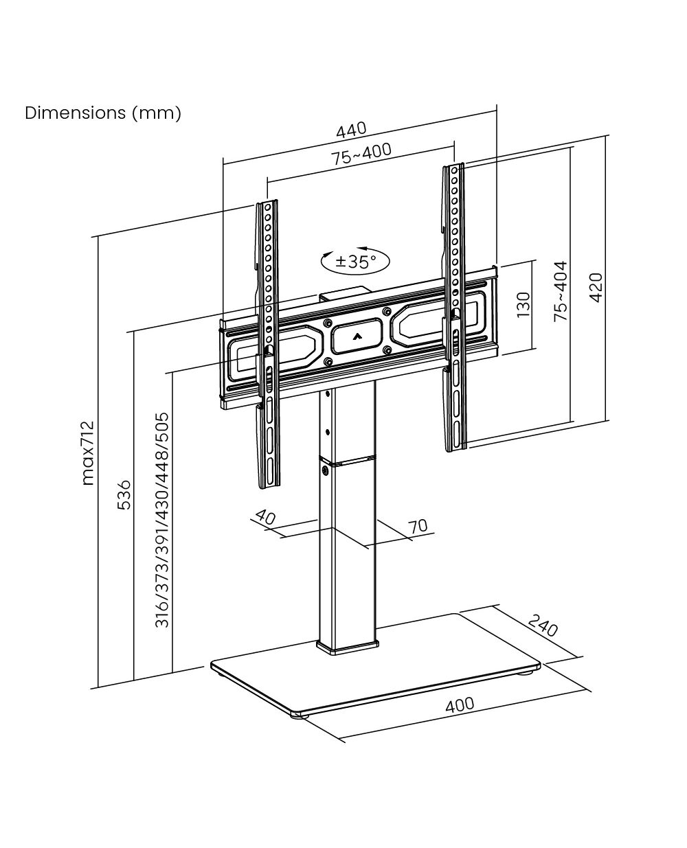 POWERTECH επιτραπέζια βάση τηλεόρασης PT-1445, 32-65", έως 40kg