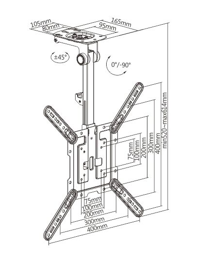 TV Height Range: min 520mm ~ max 614mm