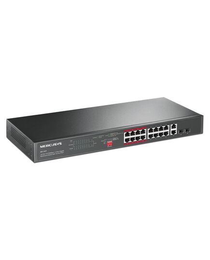Το rackmount switch της Mercusys σας επιτρέπει να επεκτείνετε το ενσύρματο δίκτυο σας με 16x 10/100Mbps PoE+ θύρες και 2x Gigabit θύρες.
