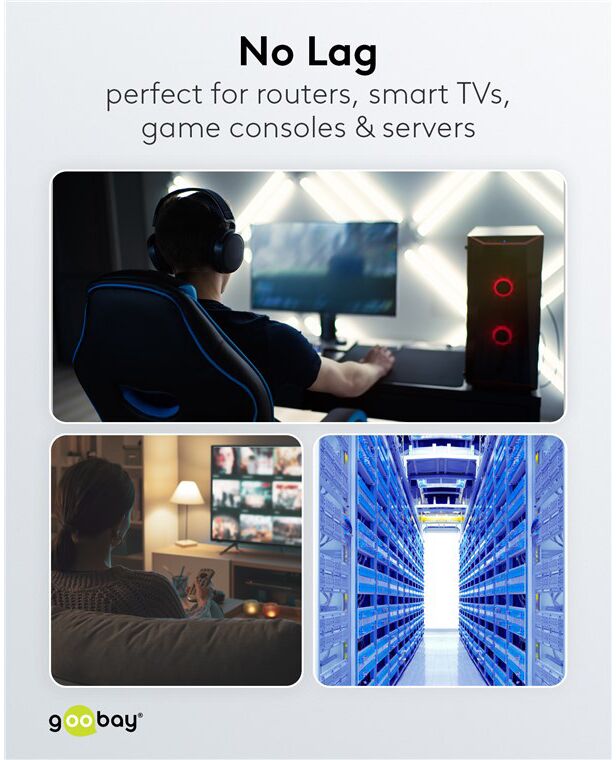 Τα καλώδια δικτύου της Goobay κατασκευάζονται από ποιοτικά υλικά, με τις υψηλότερες τεχνικές προδιαγραφές, προσφέροντας αξιόπιστη λειτουργία υψηλής απόδοσης, με αντοχή στον χρόνο.