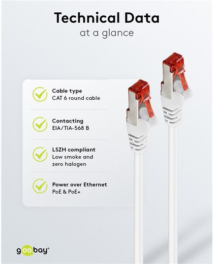 Τα καλώδια δικτύου της Goobay κατασκευάζονται από ποιοτικά υλικά, με τις υψηλότερες τεχνικές προδιαγραφές, προσφέροντας αξιόπιστη λειτουργία υψηλής απόδοσης, με αντοχή στον χρόνο.