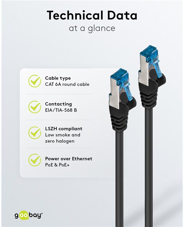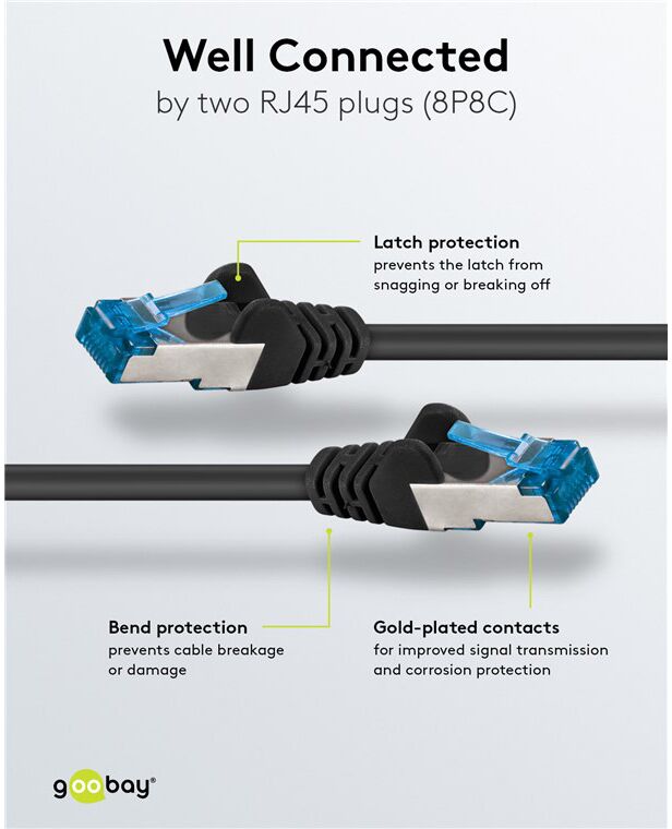 Τα καλώδια δικτύου της Goobay κατασκευάζονται από ποιοτικά υλικά, με τις υψηλότερες τεχνικές προδιαγραφές, προσφέροντας αξιόπιστη λειτουργία υψηλής απόδοσης, με αντοχή στον χρόνο.