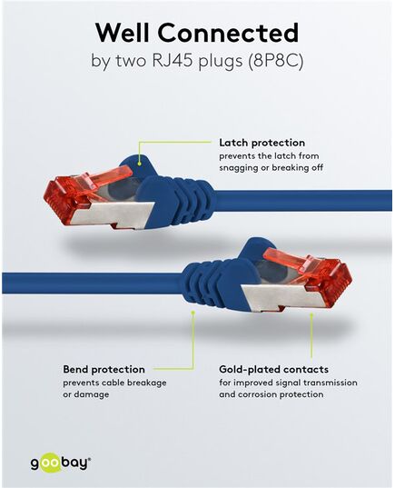Τα καλώδια δικτύου της Goobay κατασκευάζονται από ποιοτικά υλικά, με τις υψηλότερες τεχνικές προδιαγραφές, προσφέροντας αξιόπιστη λειτουργία υψηλής απόδοσης, με αντοχή στον χρόνο.