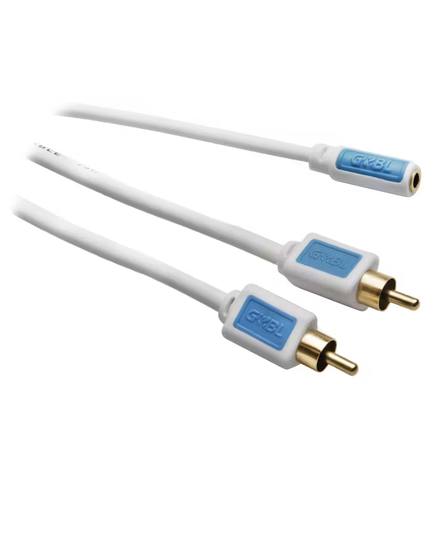 G&BL Audio Cable, Jack 3,5mm socket - 2xRCA plug, Stereo, Shielded, Gold plated, White, L.0,20 m