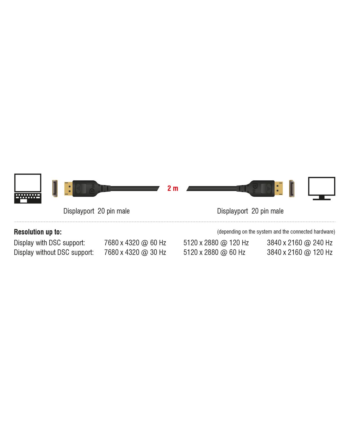 DELOCK καλώδιο DisplayPort 85660, certified, 8K/60Hz, 32.4 Gbps, 2m, μαύρο
