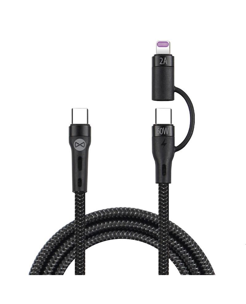 Το Forever 2-in-1 Fast Charging 60W Cable είναι ένα πολυλειτουργικό προϊόν που όχι μόνο επιτρέπει την ταχεία φόρτιση αλλά προσφέρει και γρήγορη μεταφορά δεδομένων. Η ανθεκτική πλεξούδα νάιλον εξασφαλίζει μακροχρόνια αντοχή και προστασία από φθορές, εγγυώντας τη μεγάλη διάρκεια ζωής του καλωδίου.Ο σύνδεσμος USB-C σε USB-C υποστηρίζει φόρτιση συσκευών με ισχύ έως και 60W, ενώ η λειτουργία 2-in-1 επιτρέπει την εύκολη εναλλαγή από USB-C σε Lightning σύνδεσμο, καθιστώντας το καλώδιο συμβατό με μια ευρεία γκάμα συσκευών. Είναι ιδανικό για καθημερινή χρήση, τόσο στο σπίτι όσο και εν κινήσει.
