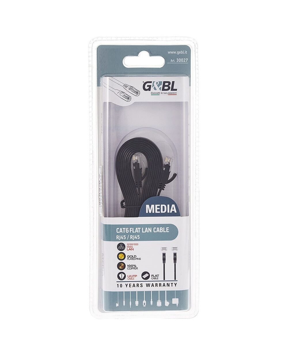 G&BL CAT 6 Network Cable U/UTP, Flat, 30AWG, Pure Copper, Black, L.3,0 m