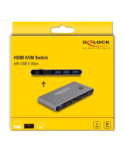 DELOCK HDMI KVM switch 18647 με 4x θύρες USB 5Gbps, 8K/30Hz, γκρι