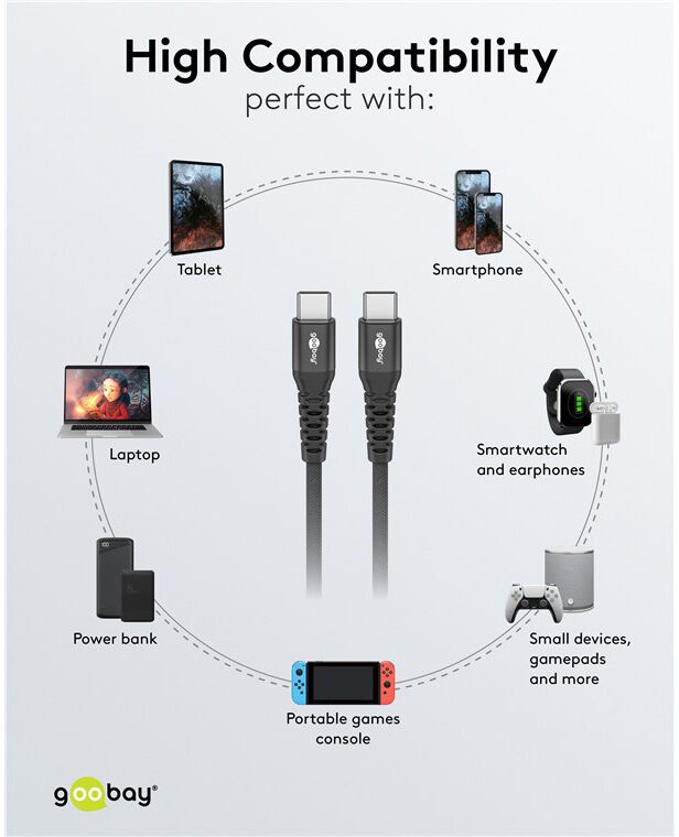 Καλώδιο φόρτισης και μεταφοράς δεδομένων USB-C σε USB-C της Goobay.