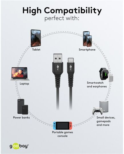 Καλώδιο φόρτισης και μεταφοράς δεδομένων USB-C σε USB της Goobay.
