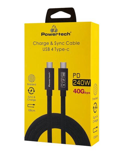 POWERTECH καλώδιο USB-C PTR-0165, USB4, 240W, 40Gbps, 8K/60Hz, 1m, μαύρο