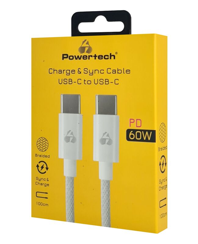 POWERTECH καλώδιο USB-C PTR-0183, 60W, 480Mbps, 1m, λευκό