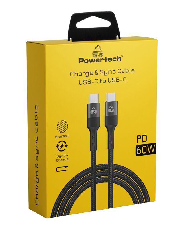 Καλώδιο φόρτισης και μεταφοράς δεδομένων USB-C σε USB-C της Powertech.