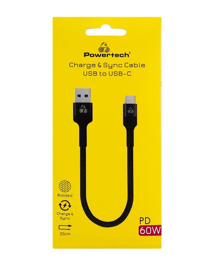 POWERTECH καλώδιο USB-C σε USB PTR-0166, 60W, 480Mbps, 25cm, μαύρο