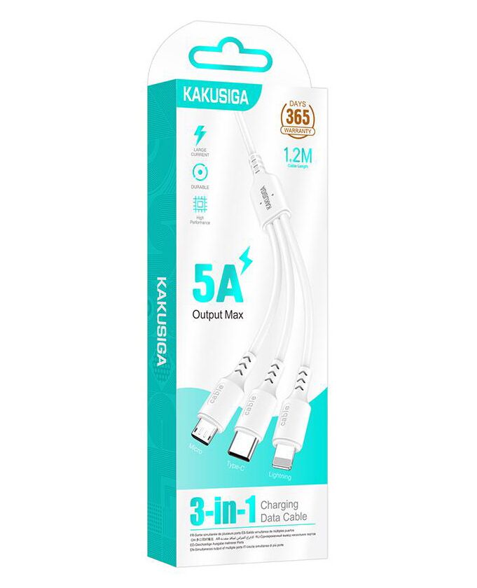 KAKUSIGA καλώδιο USB σε USB-C/Lightning/Micro USB KSC-997, 5A, 1.2m, λευκό
