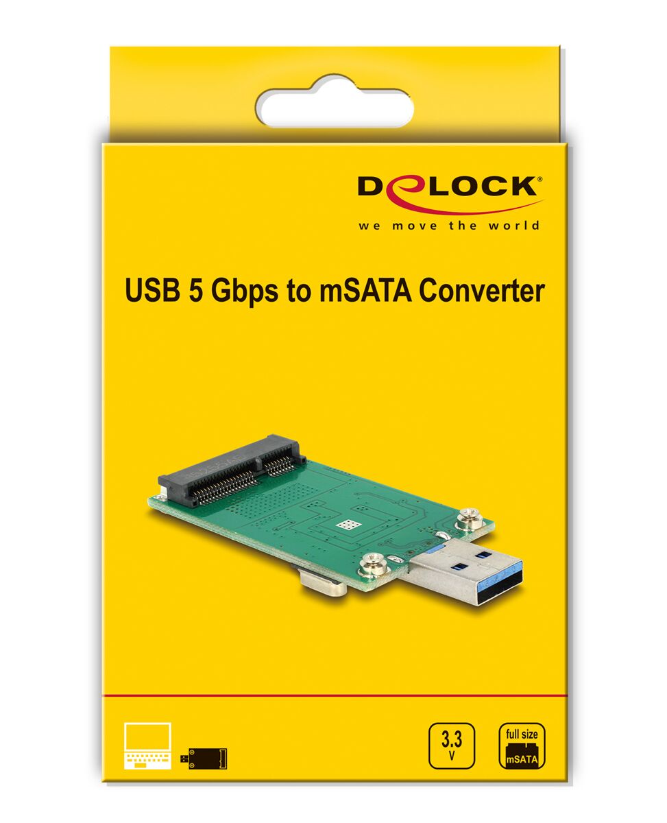Αυτός ο αντάπτορας της Delock επιτρέπει τη σύνδεση μιας μονάδας mSATA μέσω θύρας USB ενός laptop ή desktop.