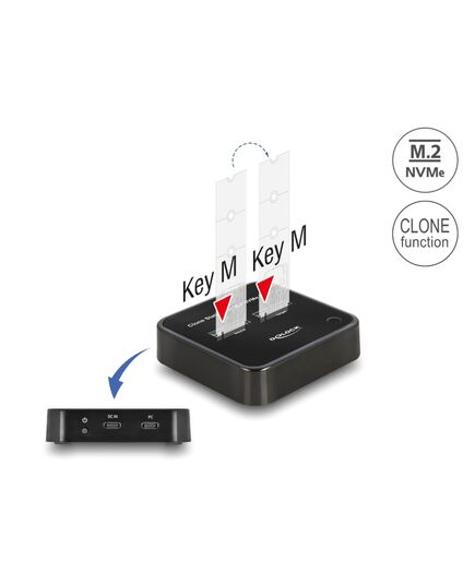 DELOCK docking station 64177, clone function, 2x M.2 NVMe 10 Gbps, μαύρο