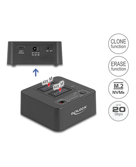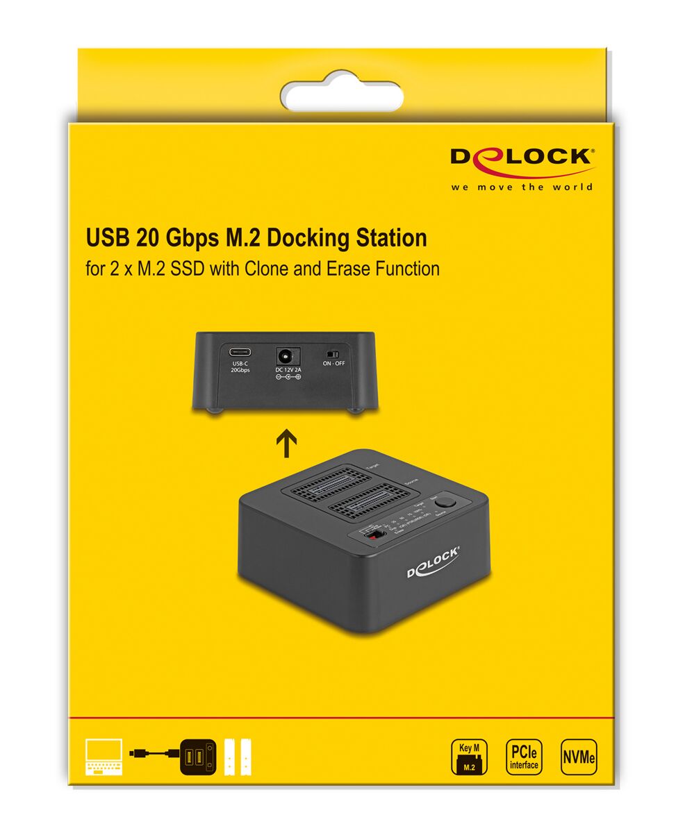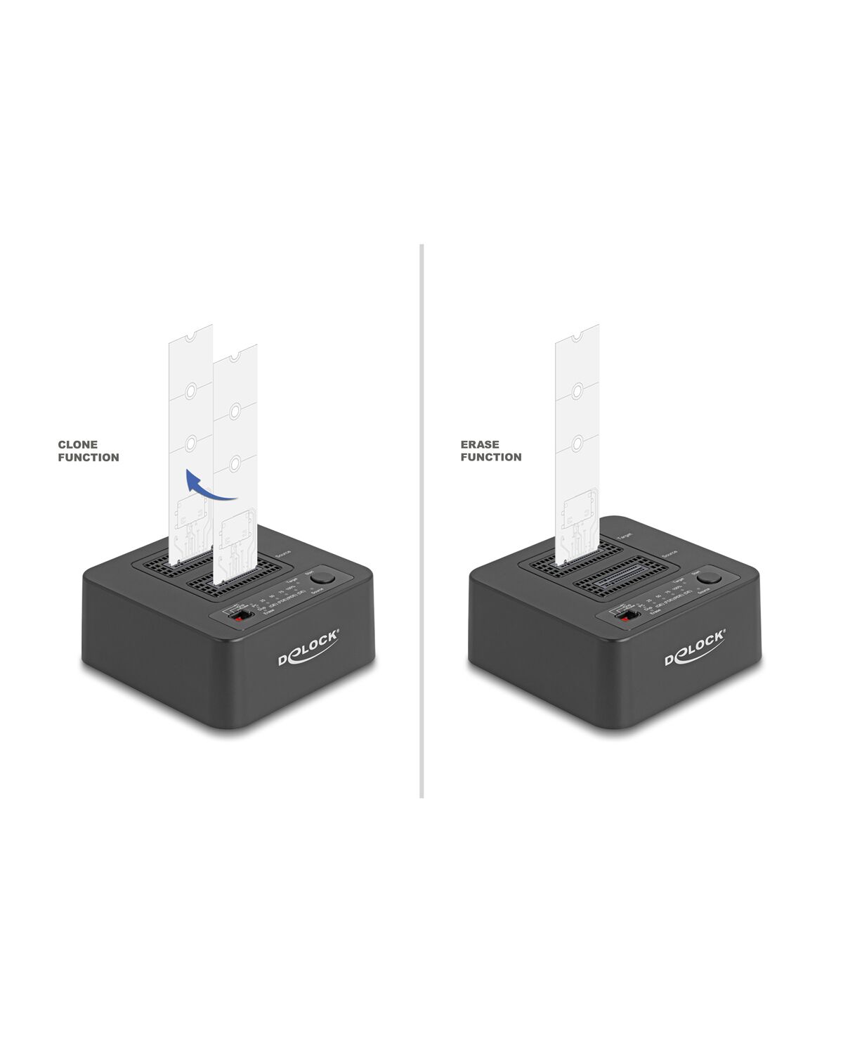 DELOCK docking station για M.2 NVMe SSD 64300, 2 θέσεων, 20Gbps, clone/erase function, μαύρο