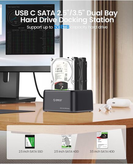 Το docking station της ORICO επιτρέπει την σύνδεση έως 2x 2.5" ή 3.5" SATA HDD/SSD σε έναν υπολογιστή μέσω θύρας USB ή USB-C.