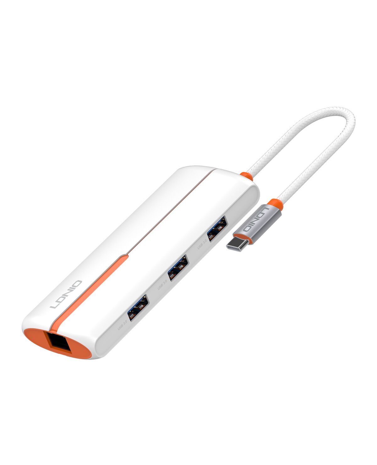 LDNIO docking station DS-26U, 6 θυρών, USB-C σύνδεση, 4K, 100W PD, λευκό