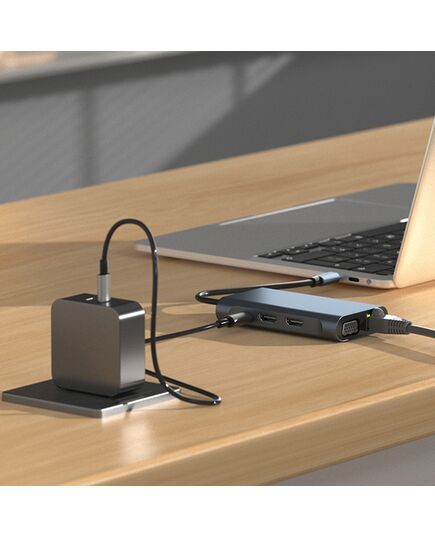 POWERTECH docking station BYL-2311 8 θυρών, USB-C σύνδεση, 100W PD, γκρι