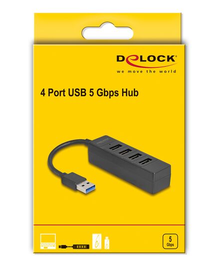 DELOCK USB hub 64350, 4x θυρών, USB 3.0, 5Gbps, USB σύνδεση, μαύρος