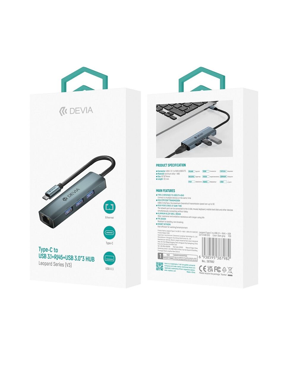 Devia adapter HUB USB-C 3.1 to 3x USB 3.0 deep gray
