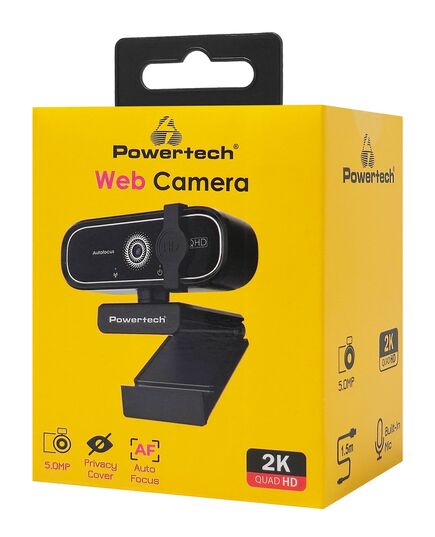 POWERTECH web camera PT-1427, 5MP, 2K QHD, αυτόματη εστίαση, 1.5m, μαύρη