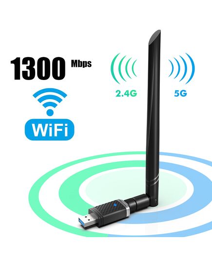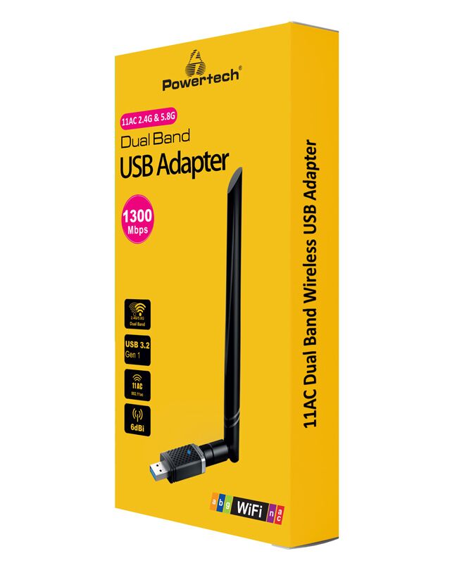 POWERTECH ασύρματος USB αντάπτορας PT-1132, 1300Mbps, 2.4/5GHz, 6dBi
