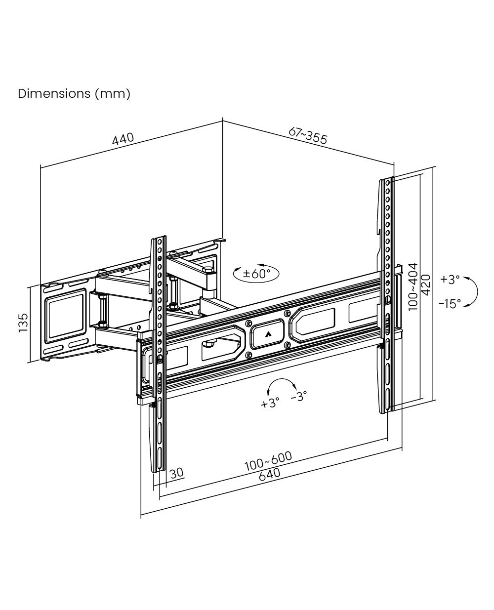 Συμβατότητα VESA: 100x100, 100x150, 150x100, 100x200, 200x100, 150x150, 200x200, 300x200, 400x200, 300x300, 400x300, 600x200, 400x400, 600x300, 600x400