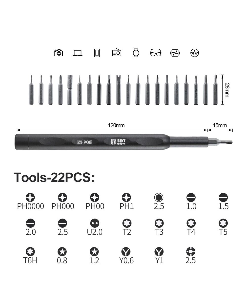 BEST set κατσαβιδιών ακριβείας BST-8930B, 22 τεμάχια