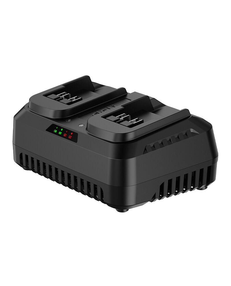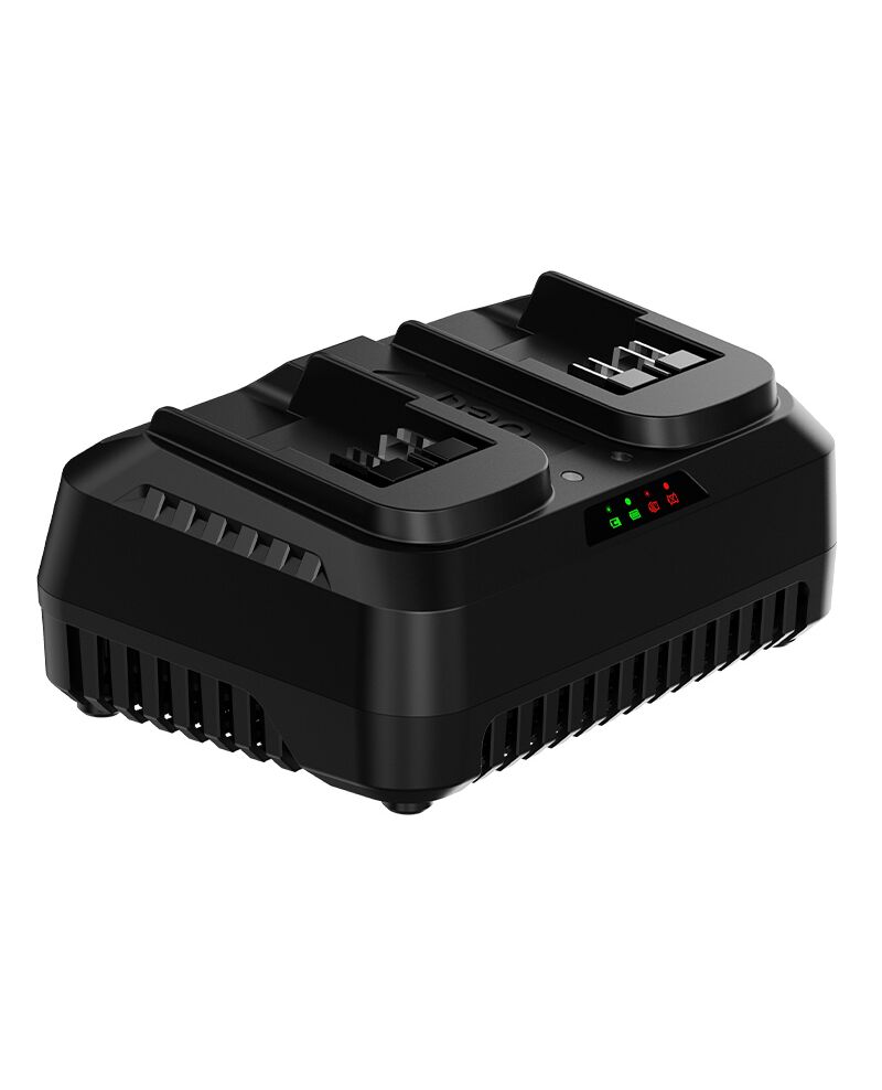 Διαθέτει δύο θέσεις φόρτισης, προσφέροντας ταυτόχρονη φόρτιση δύο μπαταριών, εξοικονομώντας χρόνο και αυξάνοντας την αποδοτικότητα στην εργασία σας.