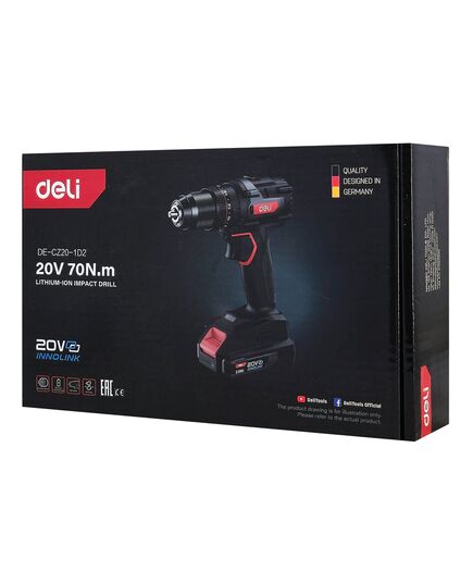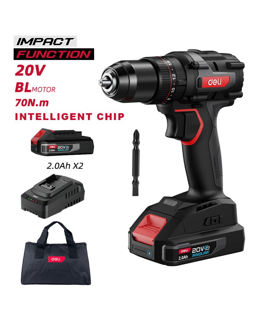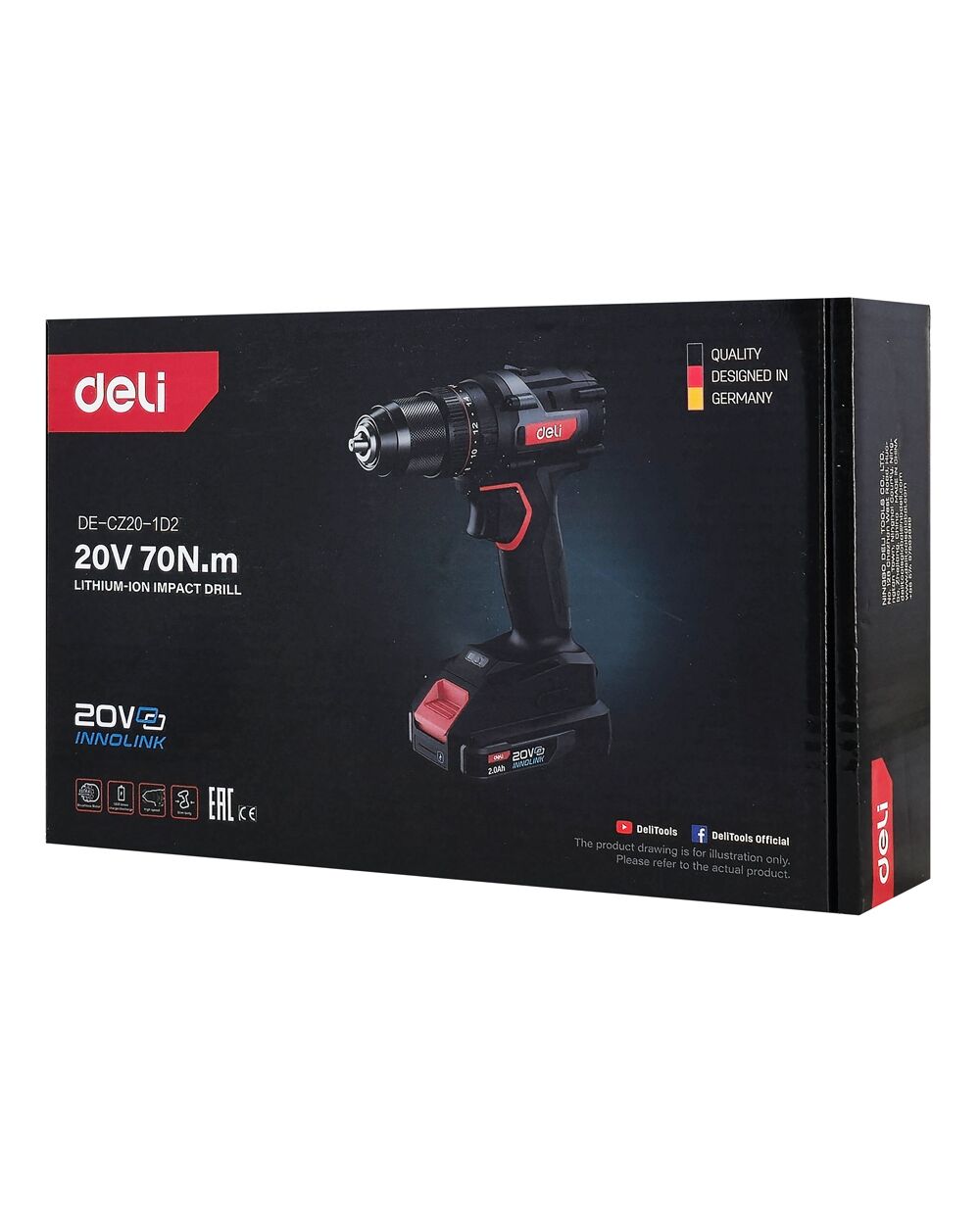 DELI κρουστικό δραπανοκατσάβιδο μπαταρίας DE-CZ20-1D2, Brushless, 20V, 2x 2Ah, 70N.m