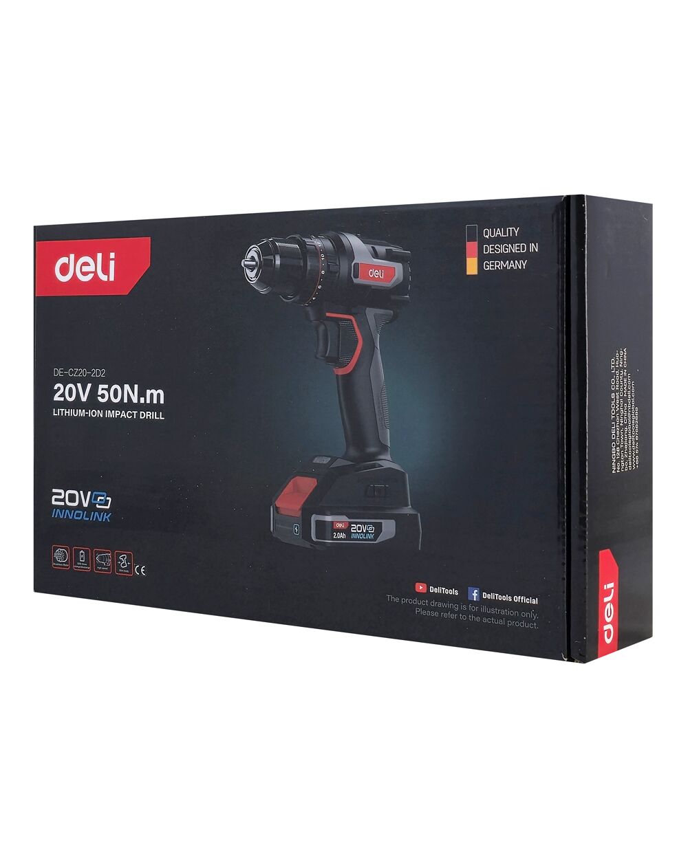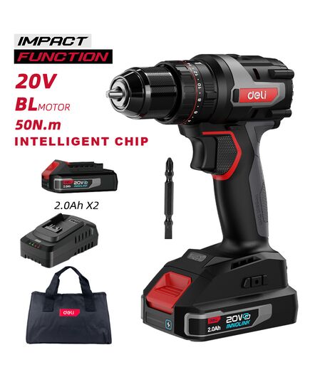 DELI κρουστικό δραπανοκατσάβιδο μπαταρίας DE-CZ20-2D2, Brushless, 20V, 2x 2Ah, 50N.m