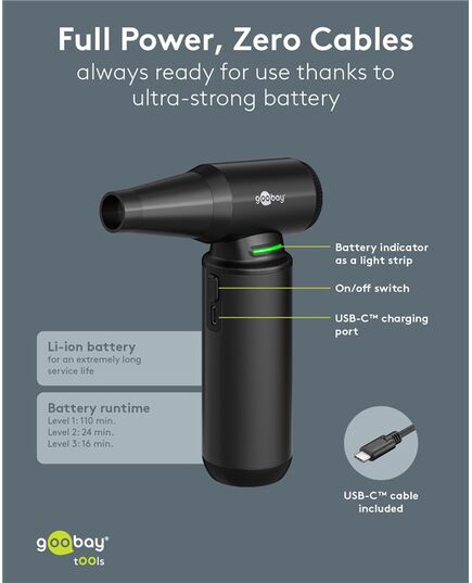 GOOBAY ηλεκτρικό air duster 77831 με φακό, 180W, 6000mAh, μαύρο