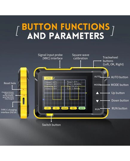 FNIRSI παλμογράφος χειρός DSO152, 1 κανάλι, 200KHz, επαναφορτιζόμενος