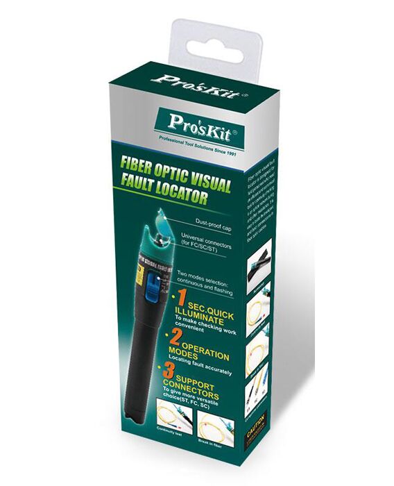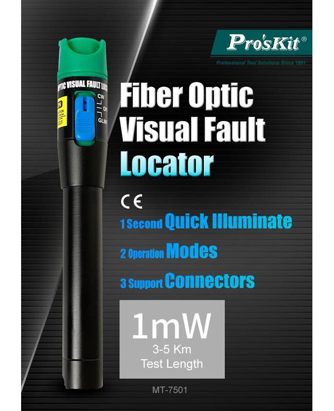 Το MT-7501 από την PROSKIT είναι ένα εργαλείο για την ανίχνευση της θέσης οπτικού σφάλματος σε οπτικές ίνες.