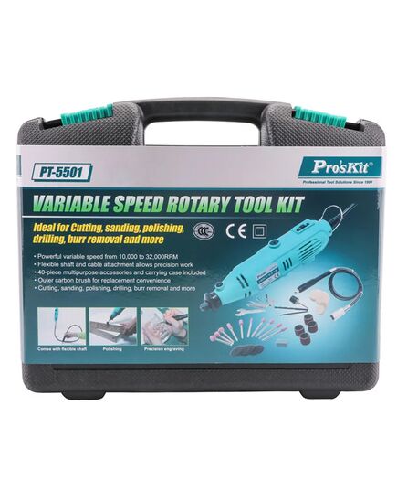 Περιστροφικό πολυεργαλείο της PROSKIT, κατάλληλο για κοπή, λείανση, τρίψιμο, χάραγμα, διάτρηση κ.α. διαφόρων επιφανειών.