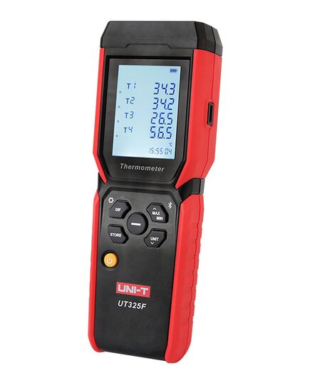 Το ψηφιακό θερμόμετρο UT325F είναι ένα εργαλείο για την ακριβή και αξιόπιστη μέτρηση της θερμοκρασίας με θερμοστοιχεία. Διαθέτει 4 κανάλια μέτρησης και υποστηρίζει 7 τύπους θερμοστοιχείων (K, J, T, E, R, S & N).