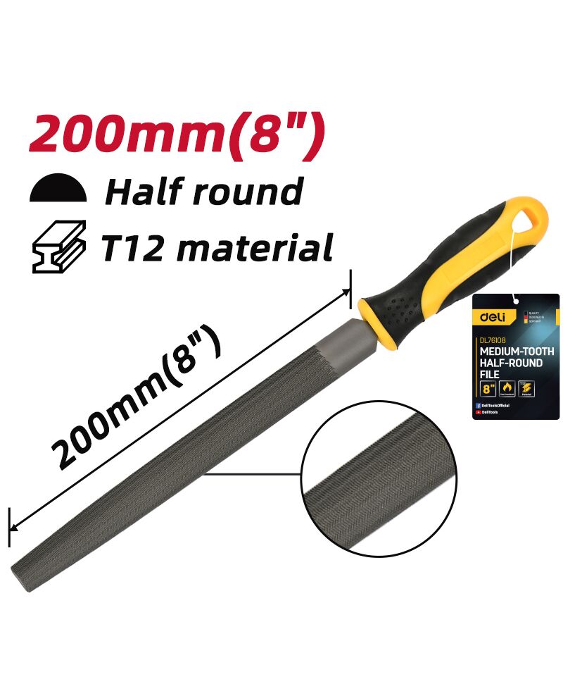 DELI λίμα ημιστρόγγυλη DL76108 με αντιολισθητική λαβή, μετάλλου, 200mm