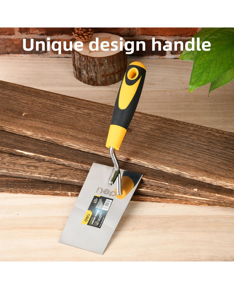 Μυστρί της DELI με ανθεκτική λάμα από ανοξείδωτο ατσάλι και άνετη αντιολισθητική λαβή. Είναι ιδανικό για εργασίες τοιχοποιίας, σοβατίσματος και επιδιορθώσεων επιφανειών.
