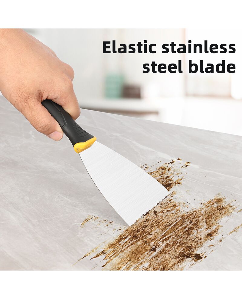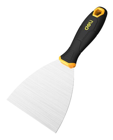 Σπάτουλα της DELI με ανθεκτική λάμα από ανοξείδωτο ατσάλι και άνετη αντιολισθητική λαβή. Είναι ιδανική για εργασίες στόκου, σοβά, αφαίρεσης βαφής και άλλες εφαρμογές.