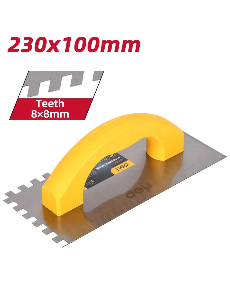 DELI σπάτουλα πλακιδίων DL509310 με πλαστική λαβή, οδοντωτή, χάλυβας άνθρακα, 230x100mm