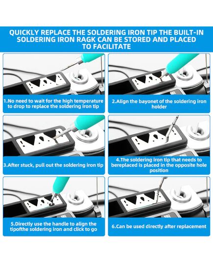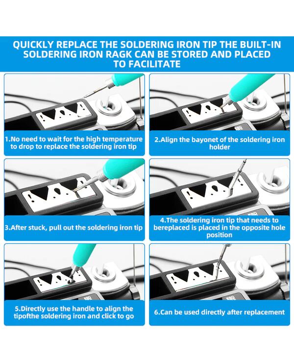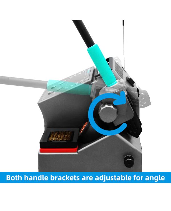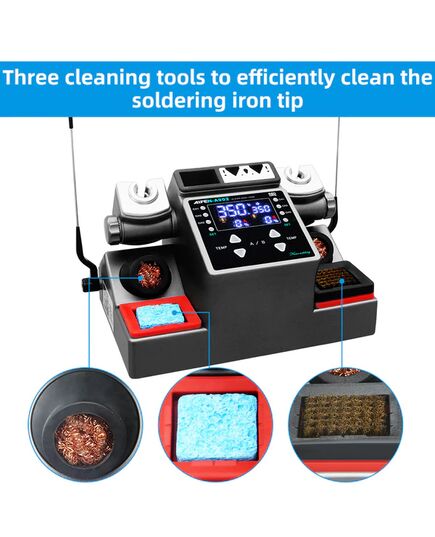 Οι περιστρεφόμενες βάσεις κολλητηριών προσφέρουν άνετη και εργονομική εμπειρία χρήσης, ενώ οι έξτρα μύτες συγκόλλησης και τα σφουγγάρια καθαρισμού μύτης κολλητηριού που συμπεριλαμβάνονται επιτρέπουν την απρόσκοπτη εκτέλεση των εργασιών σου με ακρίβεια και αξιοπιστία.