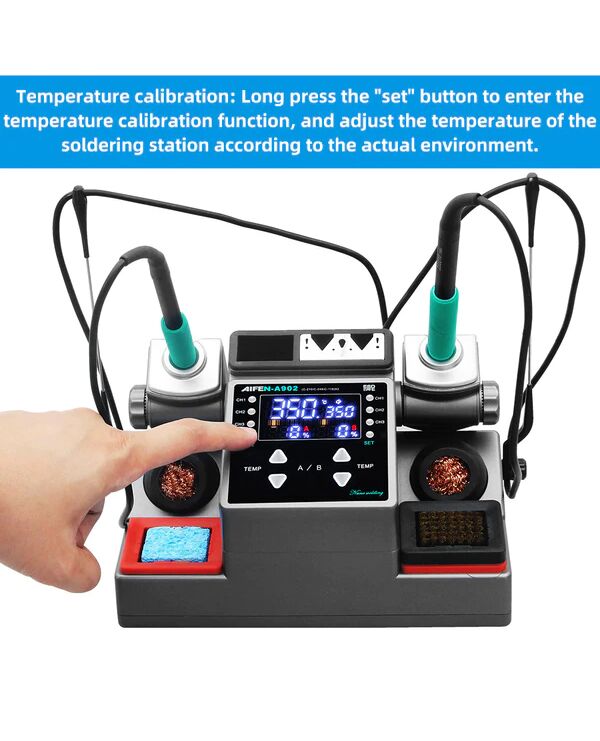 AIFEN ψηφιακός σταθμός συγκόλλησης A902, 2x κολλητήρια, 350W, 110-450 °C