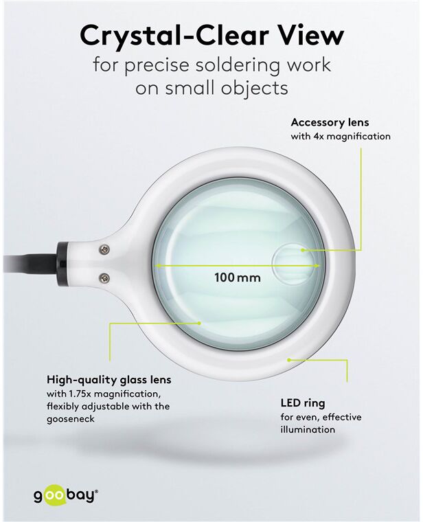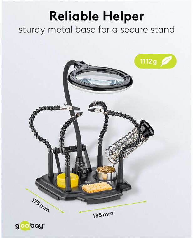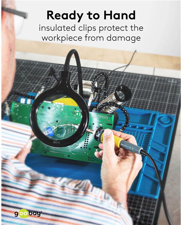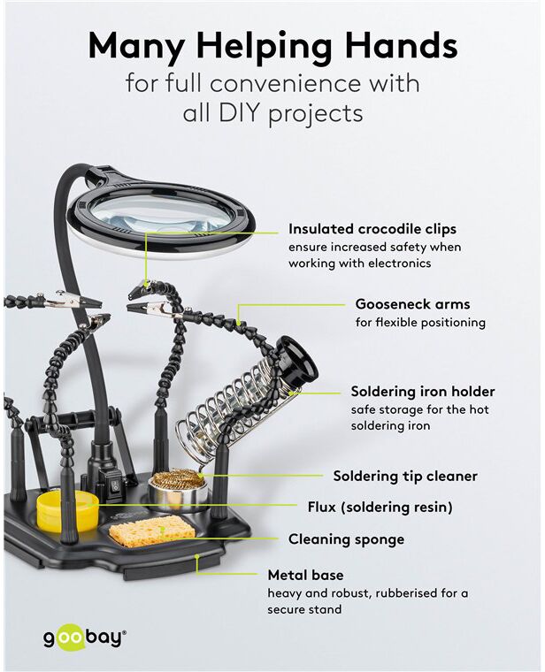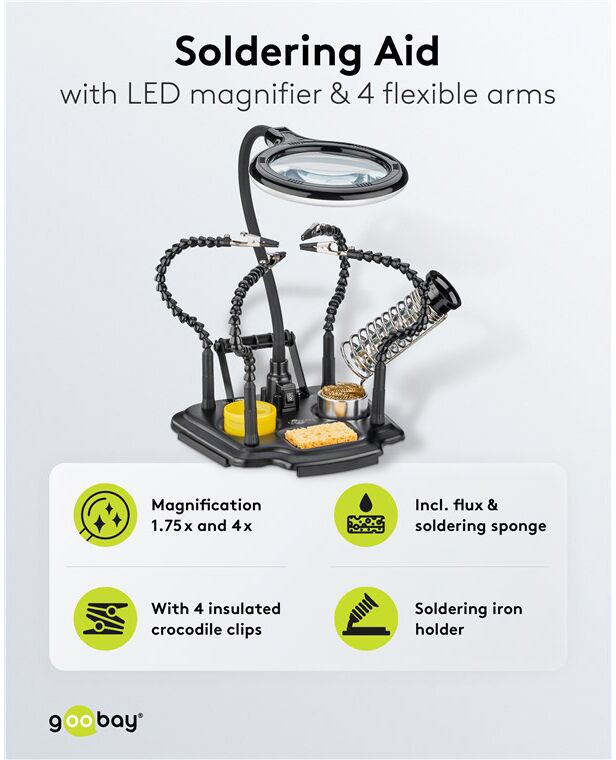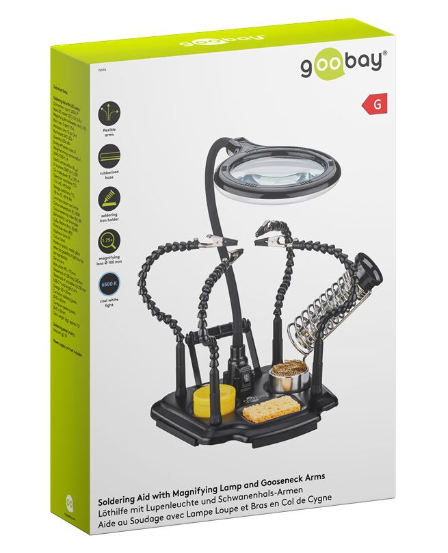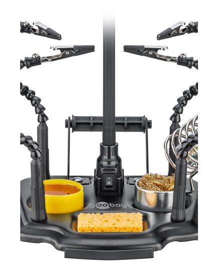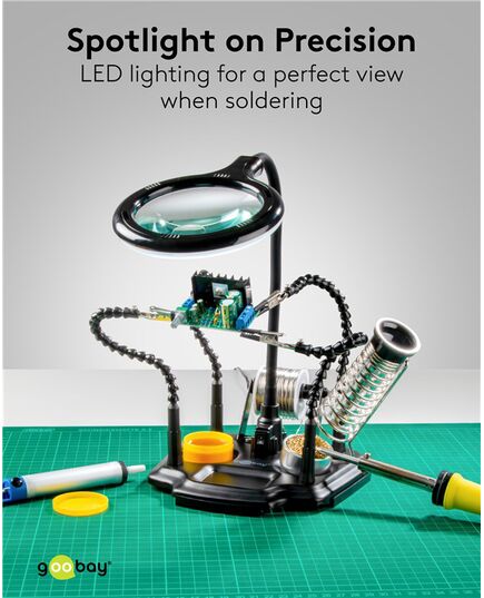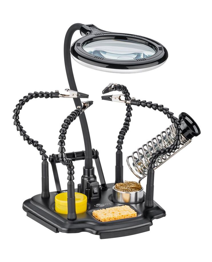 GOOBAY βάση στήριξης πλακέτας 76558 με μεγεθυντικό φακό & θέση για κολλητήρι, 4x βραχίονες, μαύρη